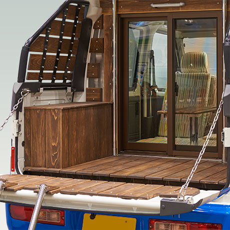 走行中や悪天候時、リアデッキ内を雨風から守ります。またリアデッキのプライバシーも確保するので、リアデッキを海水浴などの着替えスペースとして使うこともできます。